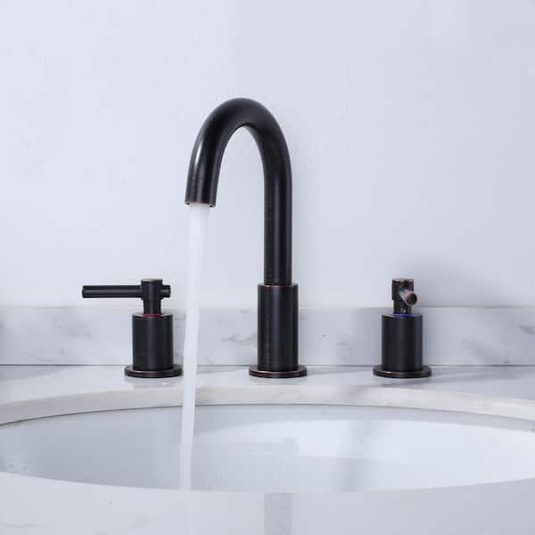 8 in. Widespread Double Handle Bathroom Faucet with Swivel Spout, Pop Up Drain and Supply Lines in Oil Rubbed Bronze