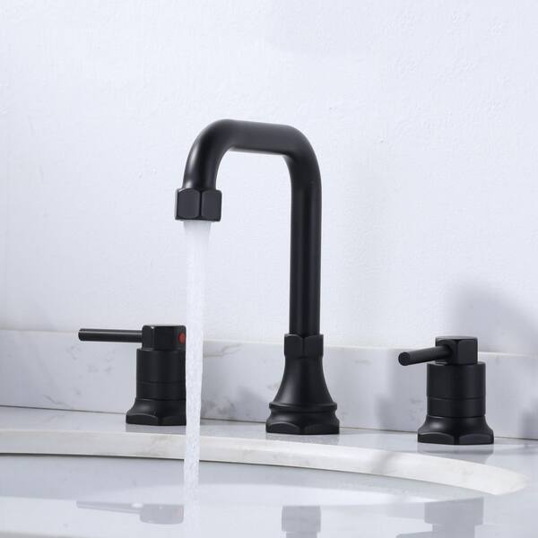 8 in. Widespread Double Handle High Arc Bathroom Faucet with Pop Up Drain Kit and 24 in. Supply Lines in Matte Black