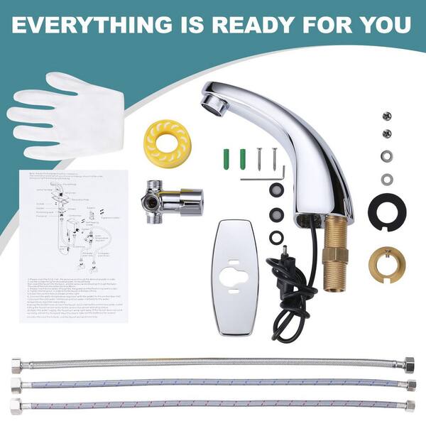 Automatic Sensor Touchless Battery Powered No Handle Bathroom Faucet with Deckplate and Supply Lines in Polished Chrome