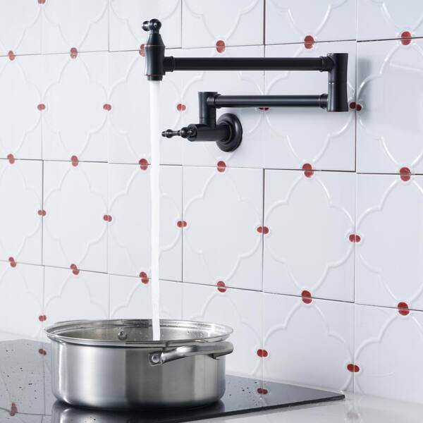 Brass Wall Mounted Pot Filler with 2 Handles and 2 Aerators in Oil Rubbed Bronze
