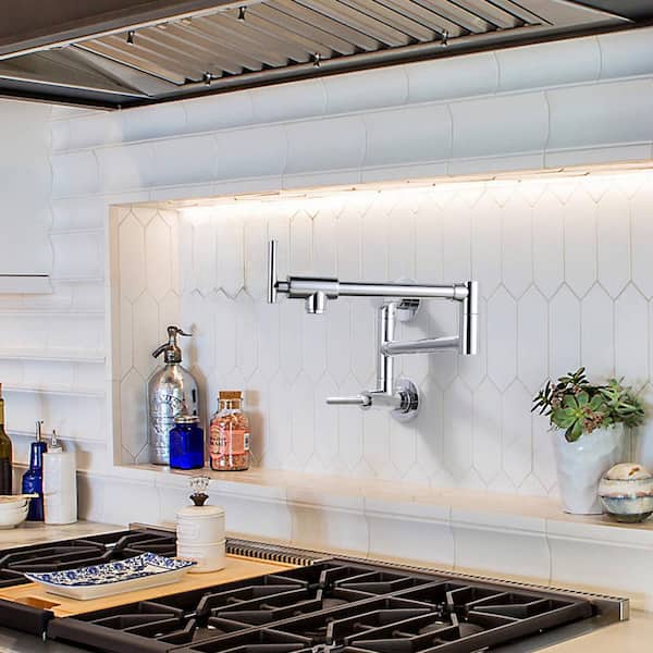 Brass Wall Mounted Pot Filler with Double Handle in Chrome