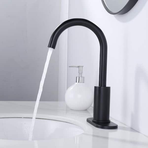 DC Powered Commercial Sensor Touchless Single Hole High-Arc Bathroom Faucet with Deck Plate in Matte Black