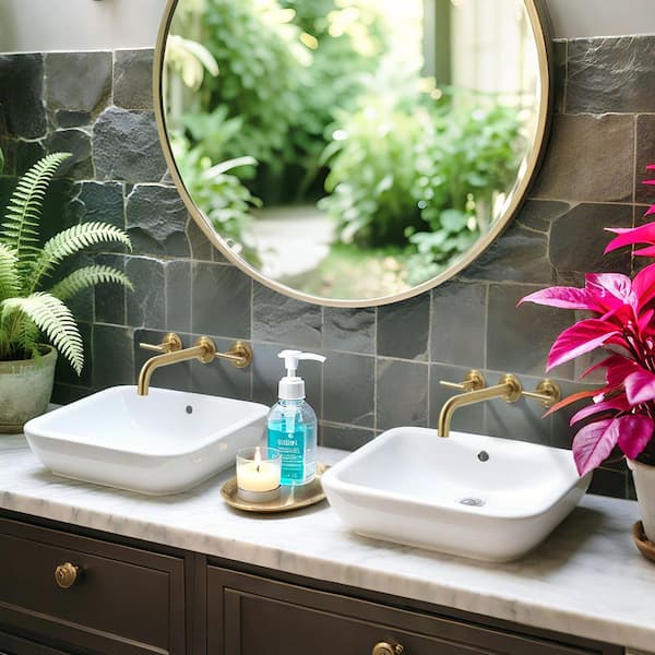 Double Handle Wall Mounted Bathroom Faucet in Gold