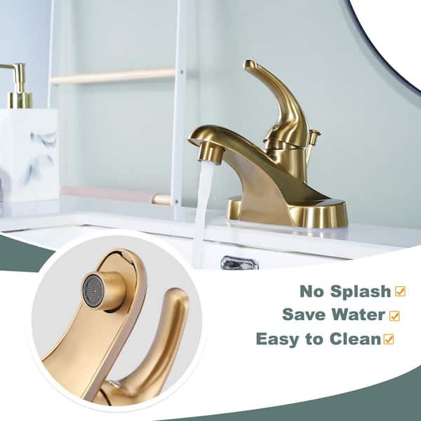 Durable 4 in. Centerset Single Handle Mid Arc Bathroom Faucet with Lift Rod Drain and Supply Lines in Gold