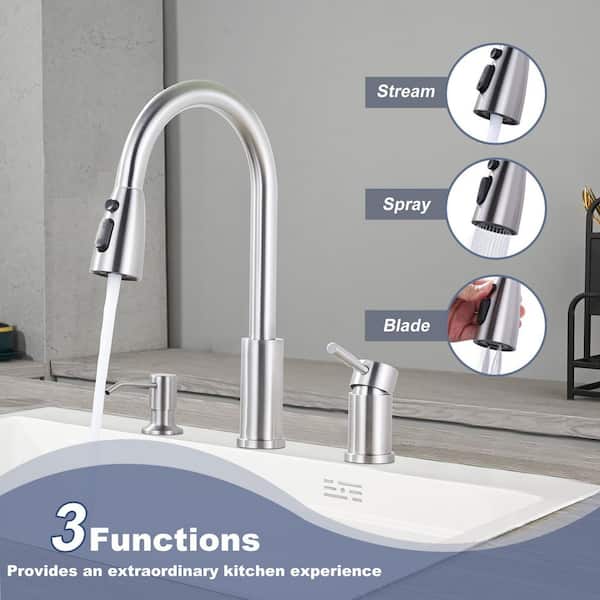 Separate Single Handle 15 in. H Pull Down Sprayer Kitchen Faucet with 360 Degree Spout Swivel in Brushed Nickel
