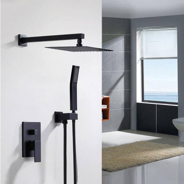 Single Handle 1-Spray Dual Wall Mount 10 in. Fixed and Handheld Shower Head 1.8 GPM with Rough-in Valve in Matte Black