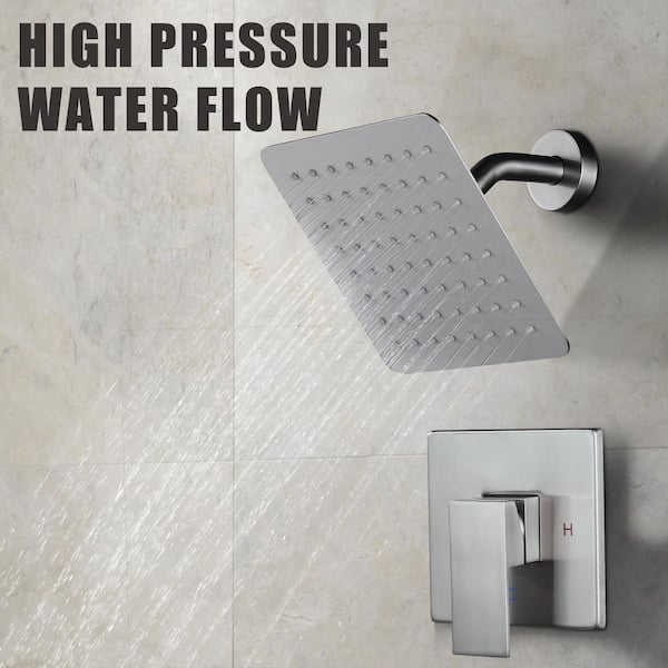 Single Handle 1-Spray Square Shower Faucet 1.8 GPM with Pressure Balance and Brass Valve Included in. Brushed Nickel