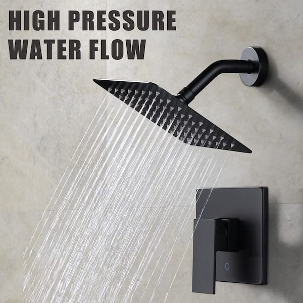 Single Handle 1-Spray Square Shower Faucet 1.8 GPM with Pressure Balance and Brass Valve Included in. Matte Black