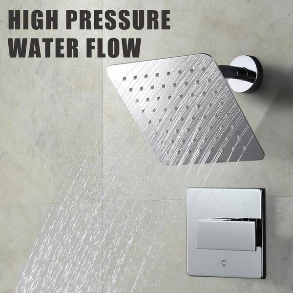 Single Handle 1-Spray Square Shower Faucet 1.8 GPM with Pressure Balance and Brass Valve Included in. Polished Chrome