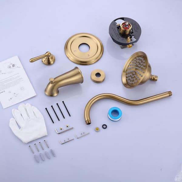 Single Handle 1-Spray Tub and Shower Faucet 1.8 GPM with Brass Rough-in Valve Included and 16 in. Shower ARM in Gold