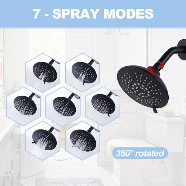 Single Handle 5-Spray Shower Faucet 1.8 GPM Brass Pressure Balance Rough-In Valve Included in Matte Black