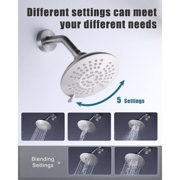 Single Handle 5-Spray Tub and Shower Faucet 1.8 GPM with Brass Rough-In Valve Included in Brushed Nickel
