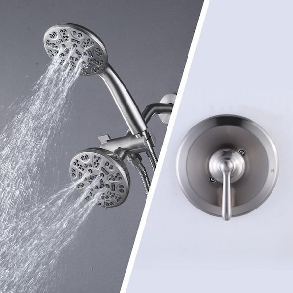 Single Handle 7-Spray Brass Shower Faucet 1.8 GPM with Double Adjustable Heads in Brushed Nickel (Valve Included)
