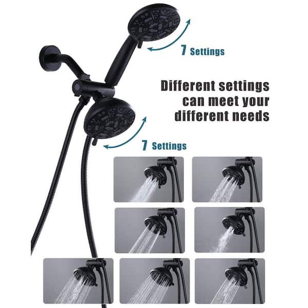 Single Handle 7-Spray Tub and Shower Faucet with 2-Shower Heads 1.8 GPM with Brass Valve Included in Matte Black
