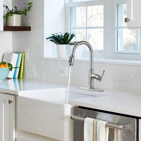 Single Handle Pull Down Sprayer Kitchen Faucet with 3-Spray Modes in Spot Free Stainless Steel Brushed Nickel