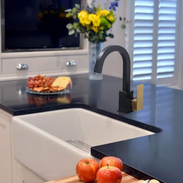 Single Handle Single Hole Stainless Steel Bar Faucet with Supply Lines in Black and Gold