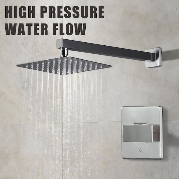 Single Handle Square 1-Spray Shower Faucet 1.8 GPM with 15 in. Shower Arm and Pressure Balance in Brushed Nickel