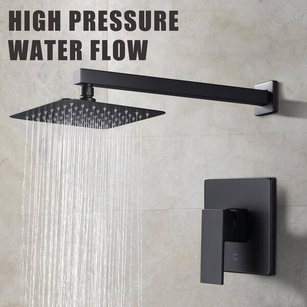 Single Handle Square 1-Spray Shower Faucet 1.8 GPM with 15 in. Shower Arm and Pressure Balance in Matte Black