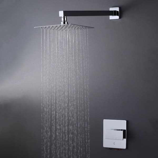 Single Handle Square 1-Spray Shower Faucet 1.8 GPM with 15 in. Shower Arm and Pressure Balance in Polished Chrome
