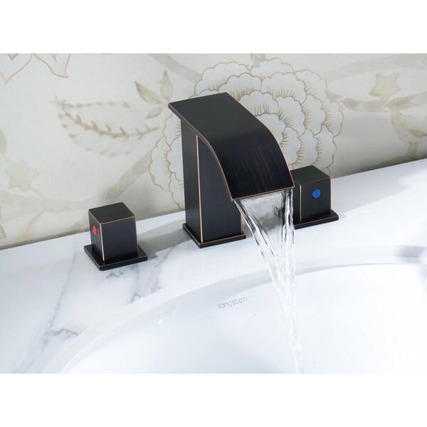 Stainless Steel 8 in. Widespread Double Handle Waterfall Bathroom Faucet W/ Drain and Supply Lines in Oil Rubbed Bronze