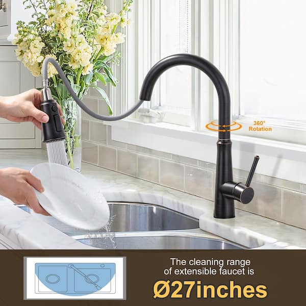 Stainless Steel Single Handle Pull Down Sprayer Kitchen Faucet with Advanced Sprayer and Deck Plate in Oil Rubbed Bronze