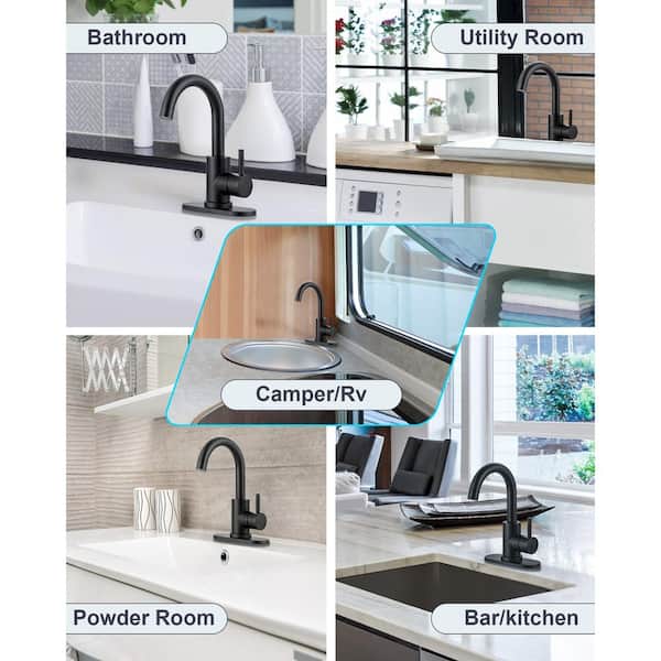 Stainless Steel Single Handlebar Faucet with Ceramic Disc Valve 6.3 in. Deckplate and 24 in. Supply Lines in Matte Black