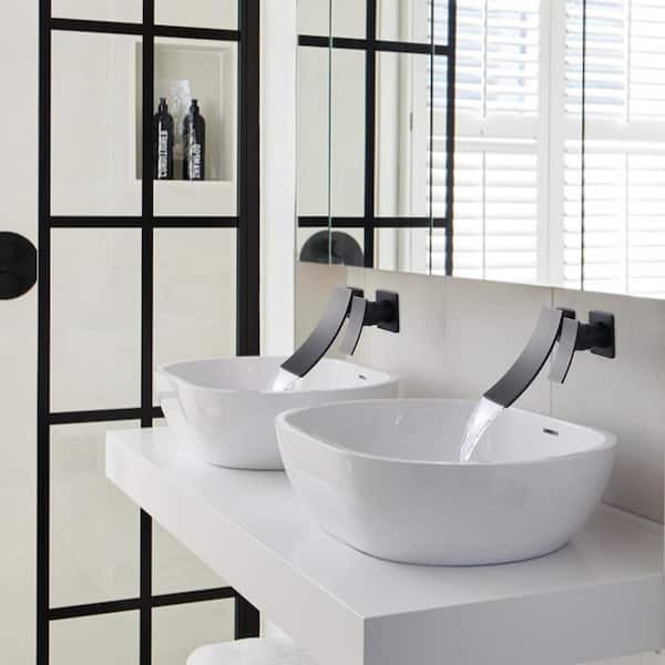 Waterfall Single Handle Wall Mounted Bathroom Faucet in Matte Black