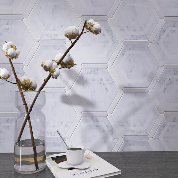 Ibiza Blue Hexagon 8.58 in. x 9.89 in. Matte Porcelain Tile Sample