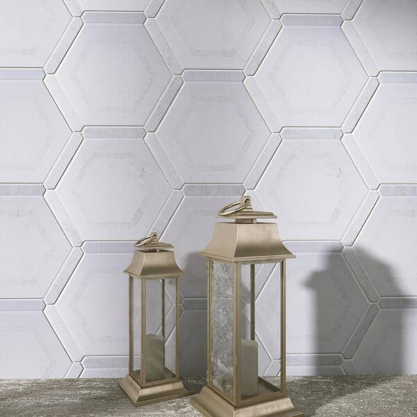 Ibiza White Hexagon 8.58 in. x 9.89 in. Matte Porcelain Tile Sample