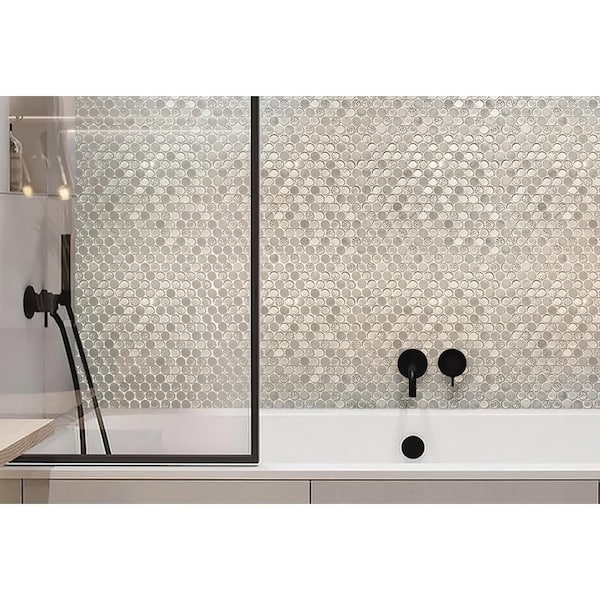 Ice Cold 4 in. x 5 in. Penny Round Glass and Marble Polished Floor and Wall Mosaic Tile Sample (0.13 sq.ft./Piece)
