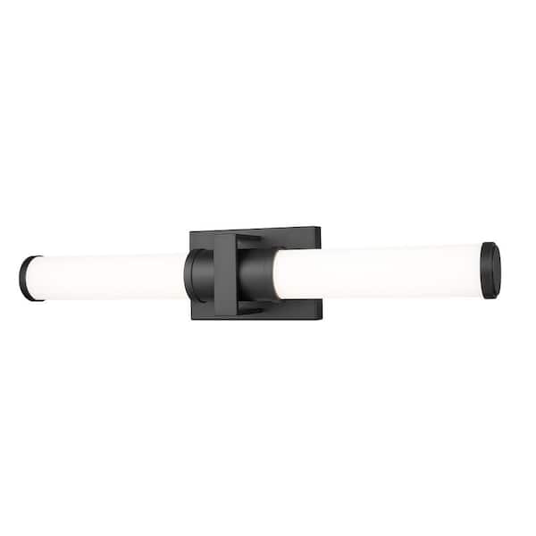 Idris 25.5 in. Integrated LED Matte Black 1 Light Vanity with Opal White Glass Shades