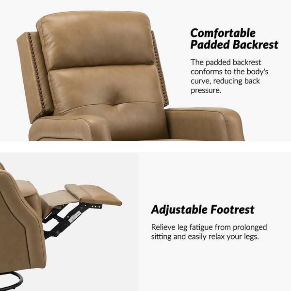 Ifigenia 28.74 in. Wide Taupe Genuine Leather Swivel Rocker Recliner with Tufted Back