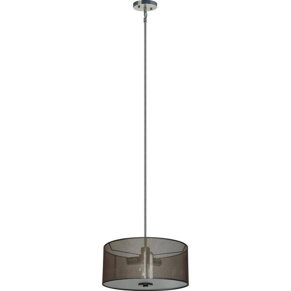 3-Light Satin Steel Chandelier with Lustrous Steel Fabric Shade