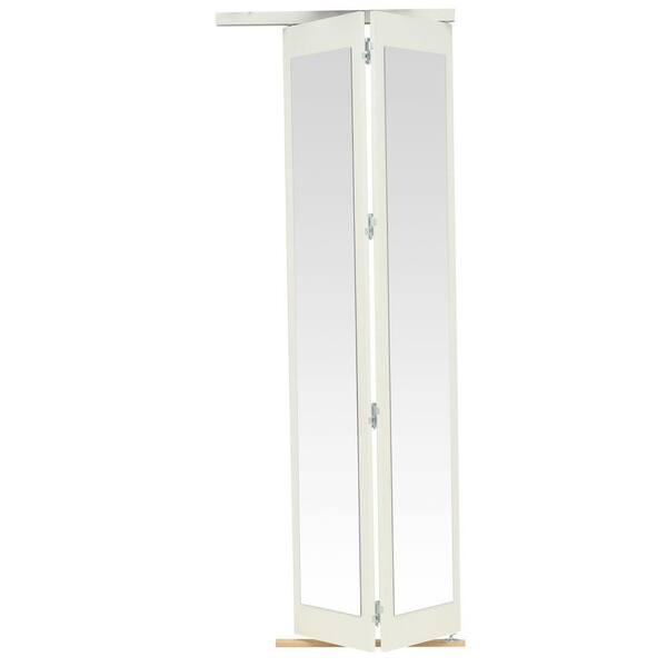 36 in. x 96 in. Mir-Mel Mirror Solid Core Primed MDF Full-Lite Interior Closet Wood Bi-Fold Door with White Trim