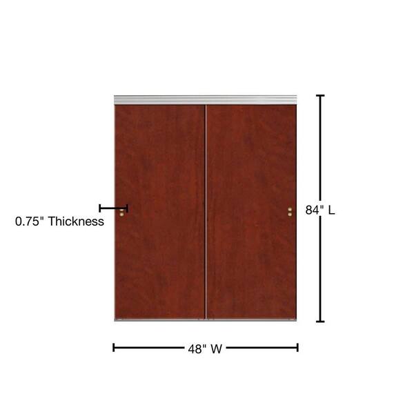 48 in. x 84 in. Smooth Flush Cherry Solid Core MDF Interior Closet Sliding Door with Chrome Trim
