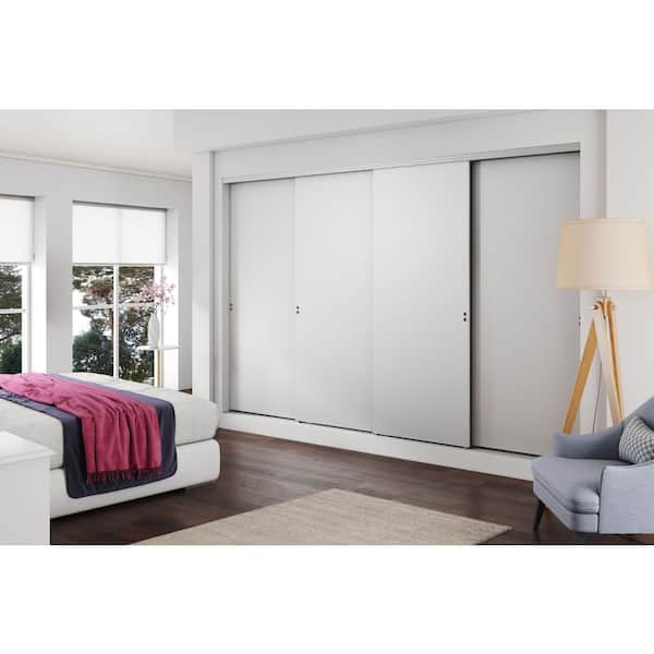 60 in. x 80 in. Smooth Flush Solid Core White MDF Interior Closet Sliding Door with Matching Trim