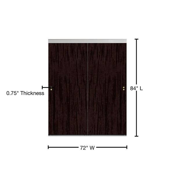 72 in. x 84 in. Smooth Flush Espresso Solid Core MDF Interior Closet Sliding Door with Chrome Trim