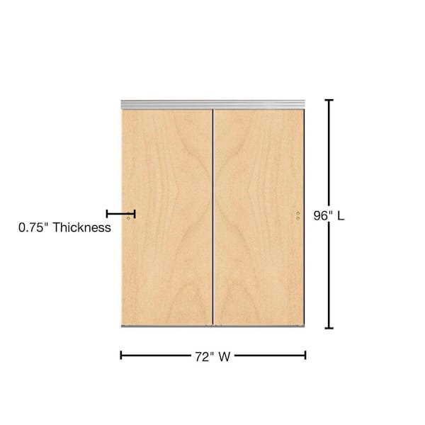 72 in. x 96 in. Smooth Flush Stain Grade Maple Solid Core MDF Interior Closet Sliding Door with Chrome Trim