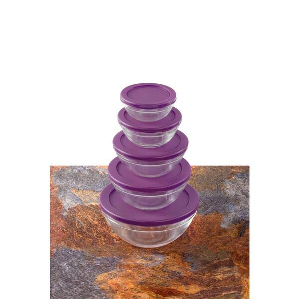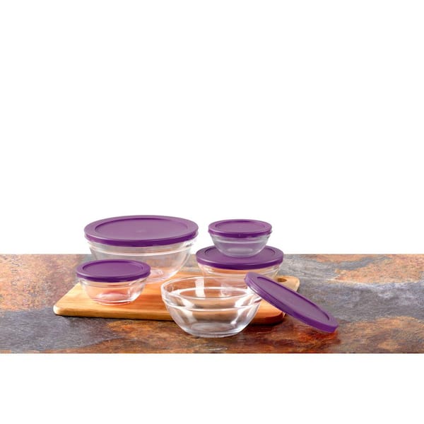 10-Piece Glass Food Storage Bowls with Purple Lids