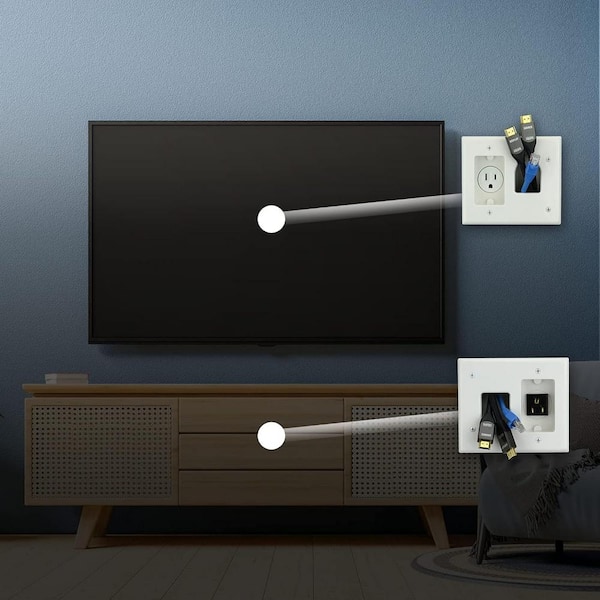 In-Wall Cable Management Kit with Single Power Plug for Neat, Organized Wall-Mounted TV Setups in White