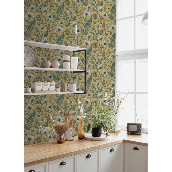 Spring Meadow Yellow Florwers Peel and Stick Sample, 8 in. x 10 in. Wallpaper Sample