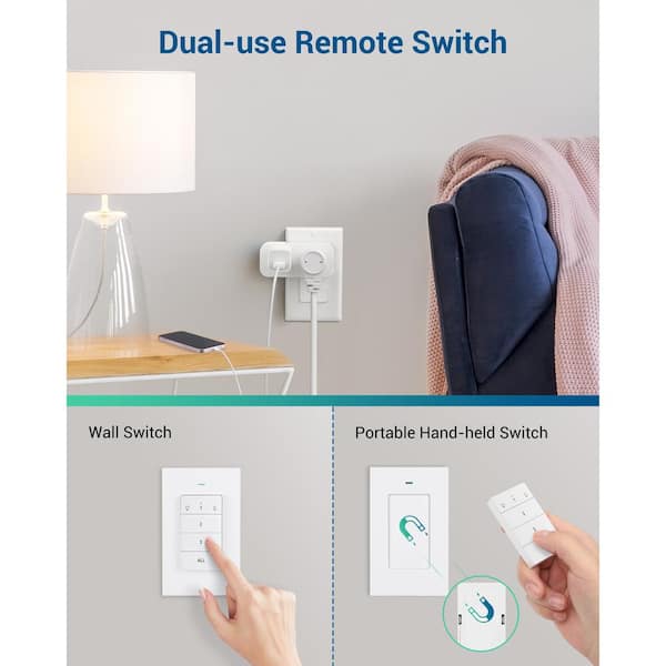 Indoor Remote Control Outlet Wireless Light Switch, 2 Independent Control Sockets, White