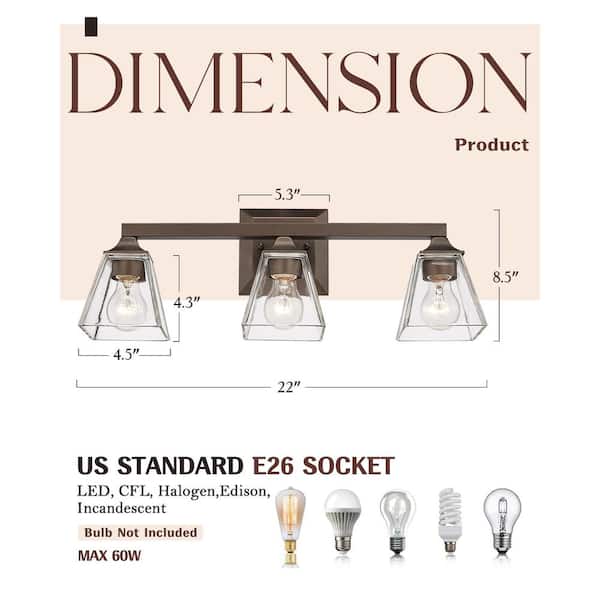 Industrial 22 in. 3-Light Oil Rubbed Bronze Vanity Light Over Mirror with Clear Glass Shade