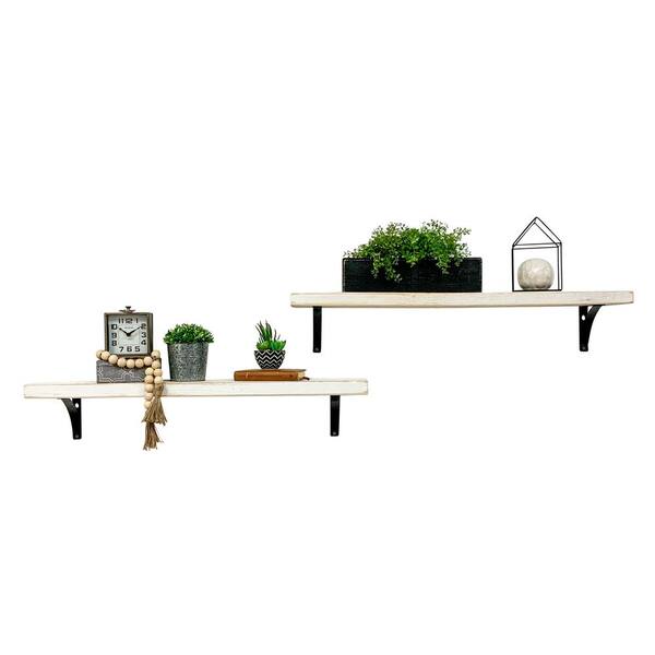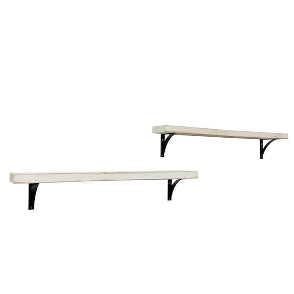 Industrial Grace 32 in. W x 5.5 in. D White Pine Wood (Set of 2) Simple Bracket Decorative Wall Shelf