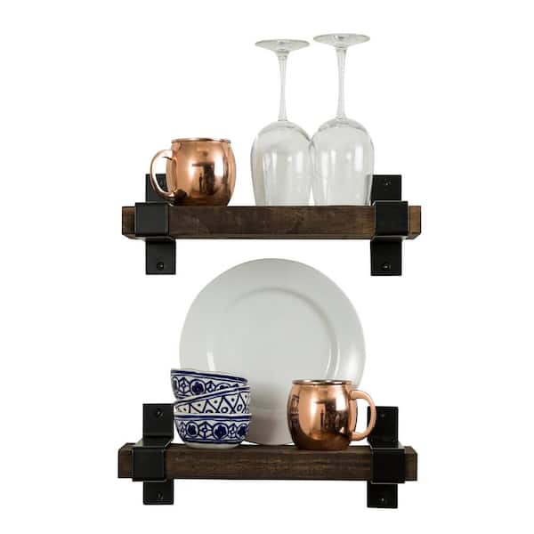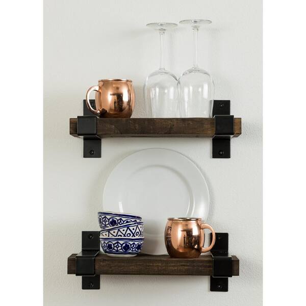 Industrial Wrap 16 in. W x 6 in. D Dark Brown Pine Wood Set of 2-Decorative Wall Shelf with Brackets