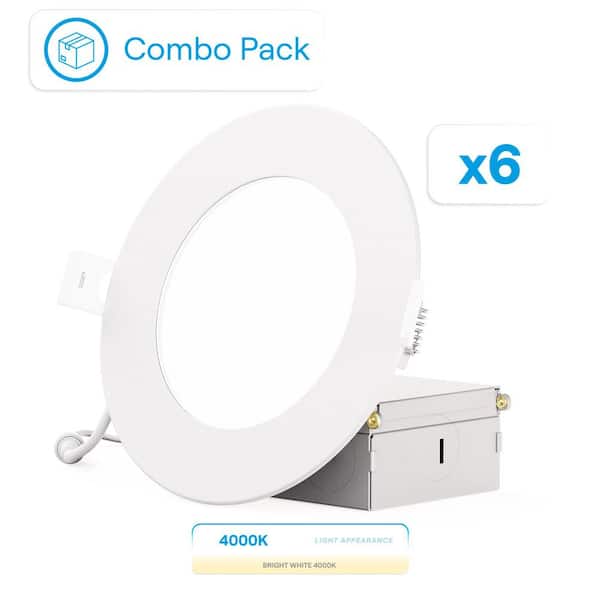 4 in. Canless 4000K Cool White 9W 750 Lumens Thin New Construction Integrated LED Recessed Light Kit Wet Rated (6-Pack)