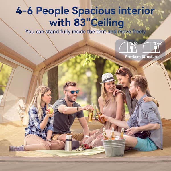Inflatable Tent for Camping Blow Up Tent with Hand Pump Waterproof Oxford Air Glamping Tent for Camping Adult 4-6 Person
