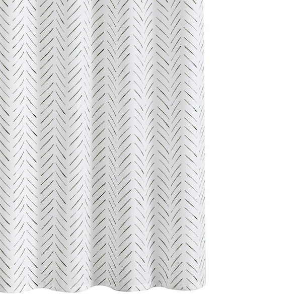 Inky Herringbone Chevron Zig Zag Fabric Modern Farmhouse Shower Curtain with 12 Hooks 70x72 Inches Black and White PVC