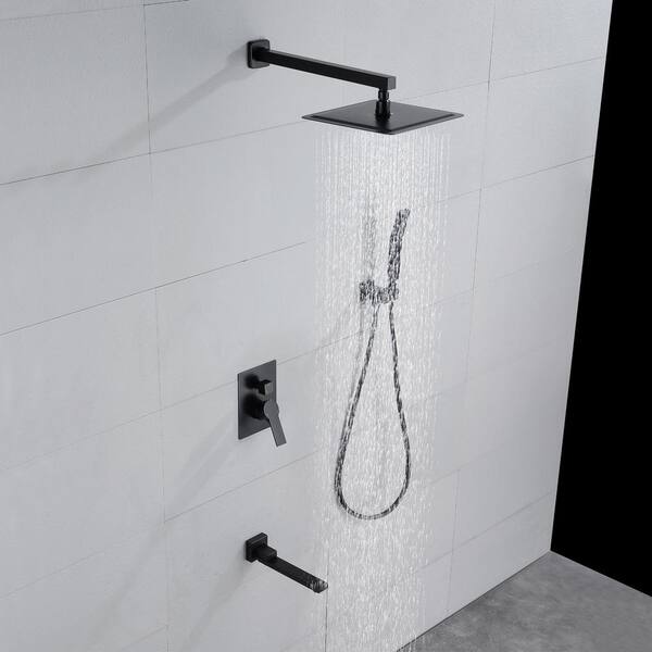 Hig Single-Handle 1-Spray 12 in. Wall Mount Rainfall Dual Shower Heads with Tub Faucet in Matte Black (Valve Included)