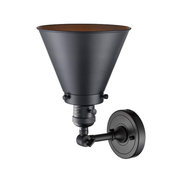 Appalachian 8 in. 1-Light Matte Black Wall Sconce with Matte Black Metal Shade with On/Off Turn Switch